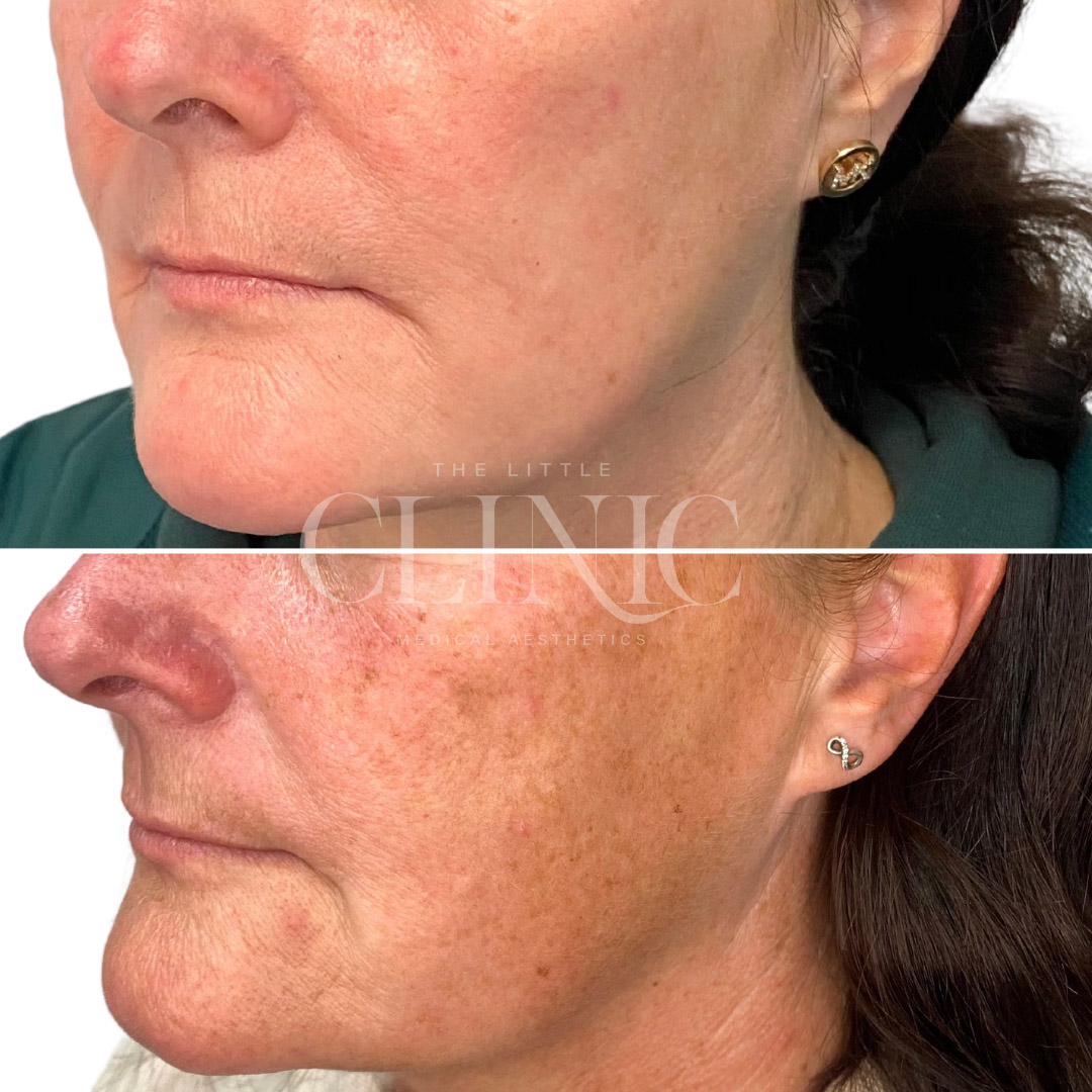 You’ll also notice overall skin improvement — better texture, brightness, and clarity — as the treatments we use for melasma often benefit your entire complexion, not just the pigmented areas.
